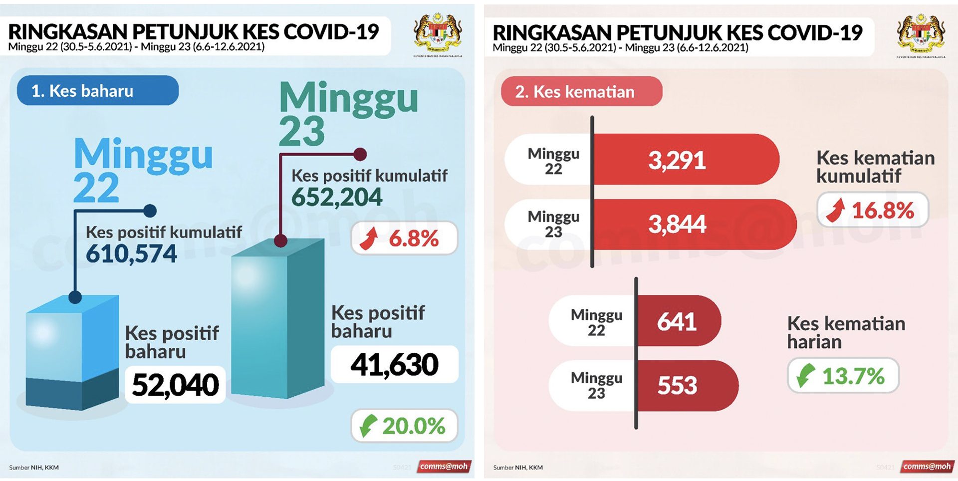 卫生部指出,死亡病例也有下降趋势, 第22周新增的死亡病例是641宗,在第23周则新增553宗, 下降了13.7%。