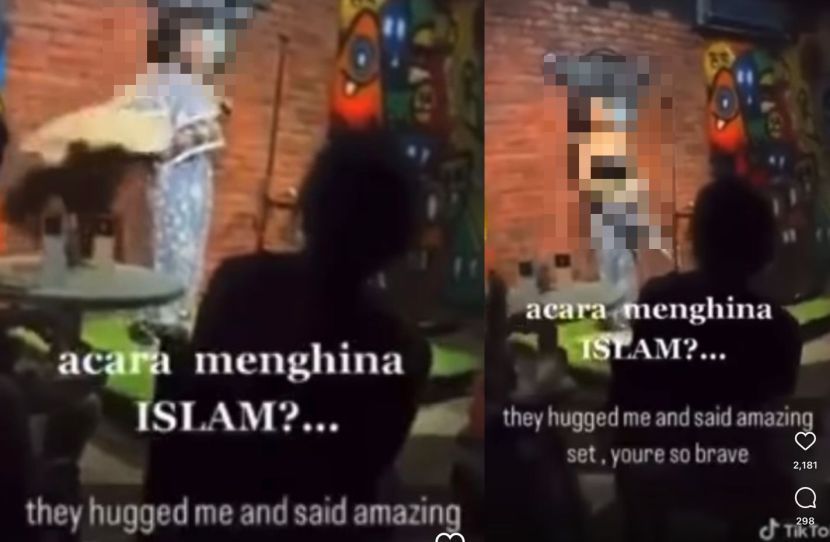 日前网络流传一段视频显示,一名女子在表演时,脱掉头巾及马来套装,涉嫌侮辱伊斯兰教,联邦直辖区宗教局及警方已经展开调查;涉事的喜剧俱乐部也因表演内容惹议,被令暂时关闭!