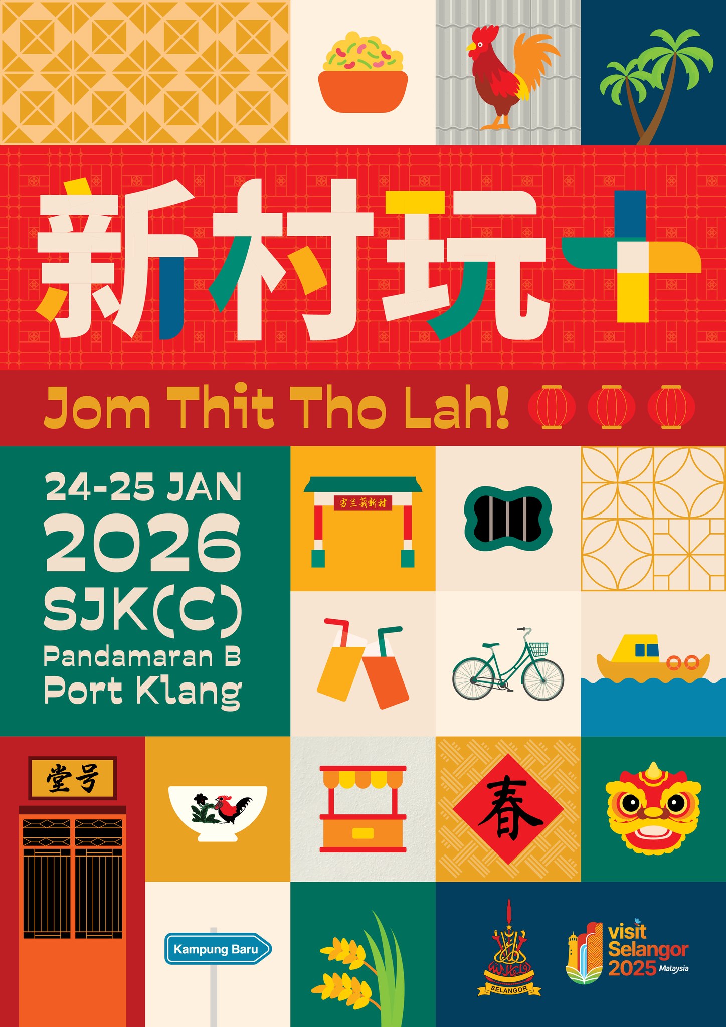 《新村玩+ Jom Thit Tho Lah!》雪州新村节 将于 1月24日及25日,在 巴生班达马兰华小B校 热情登场,带大家走进新村,一起发掘最地道的人情味与文化魅力。