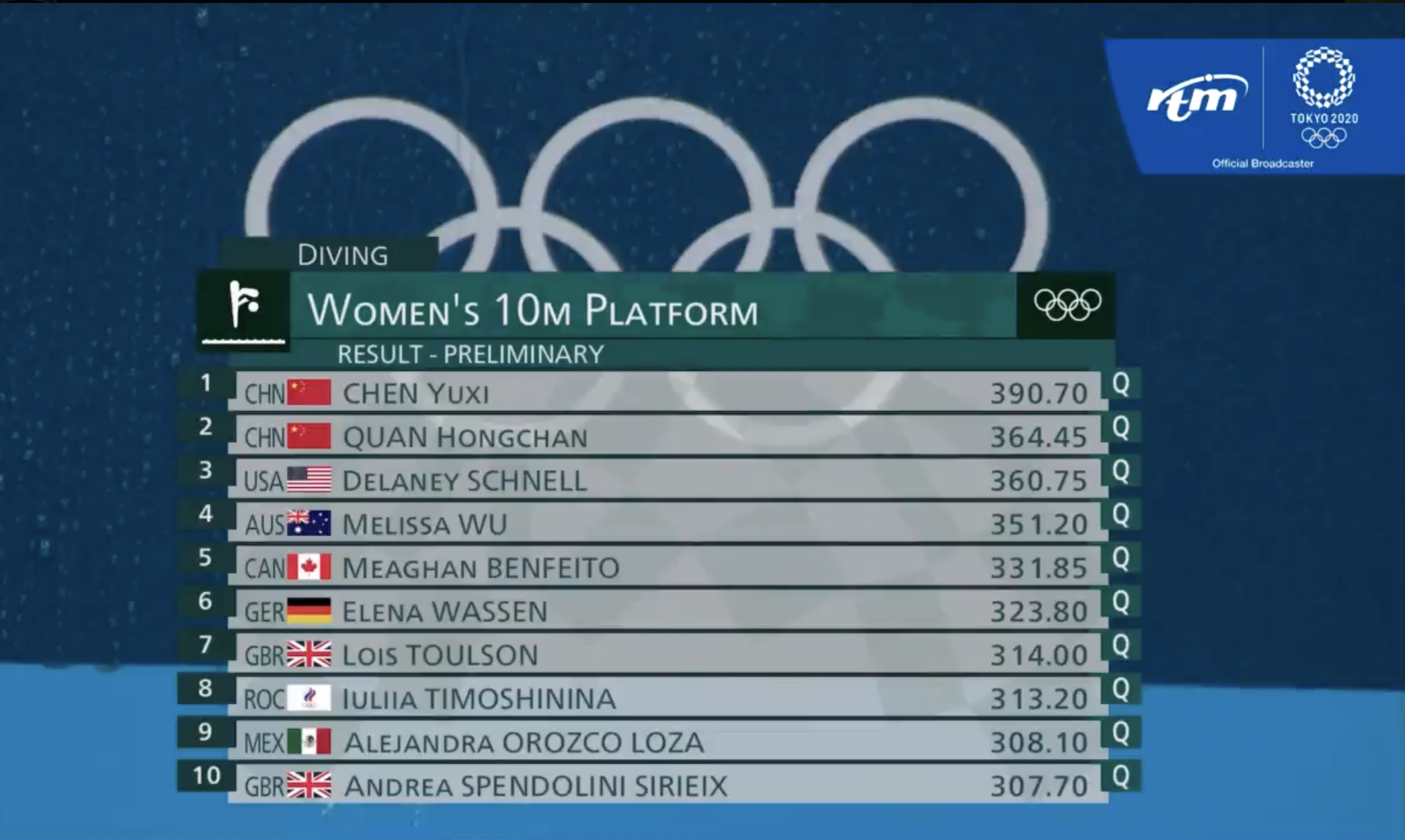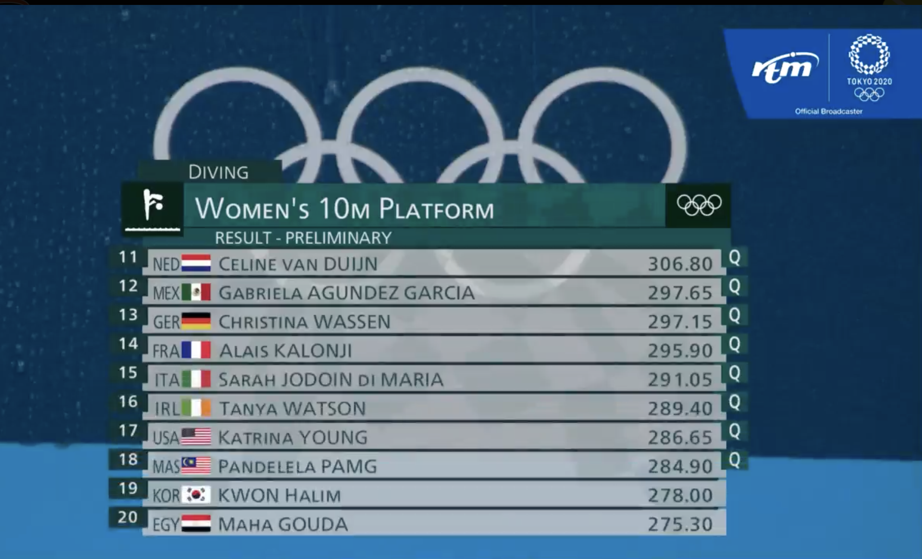 我国两朵跳水金花今午在东京奥运会女子个人10米跳台预赛中,“小潘”潘德莉拉惊险以第18位的最后顺位跳入了半决赛;至于张俊虹,则因首两跳的临场发挥不理想,遗憾的结束东奥征途!