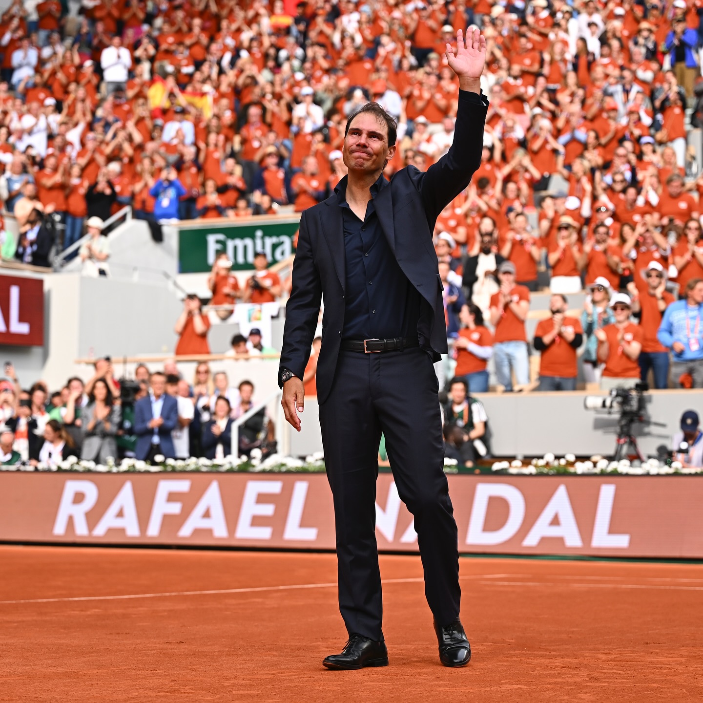 为了纪念他的辉煌生涯,法网官方在主球场对面的界外区域设置了一块牌匾,刻上纳达尔的名字、脚印,以及代表14座冠军的数字。看到这份象征荣誉的纪念,纳达尔不禁落泪。