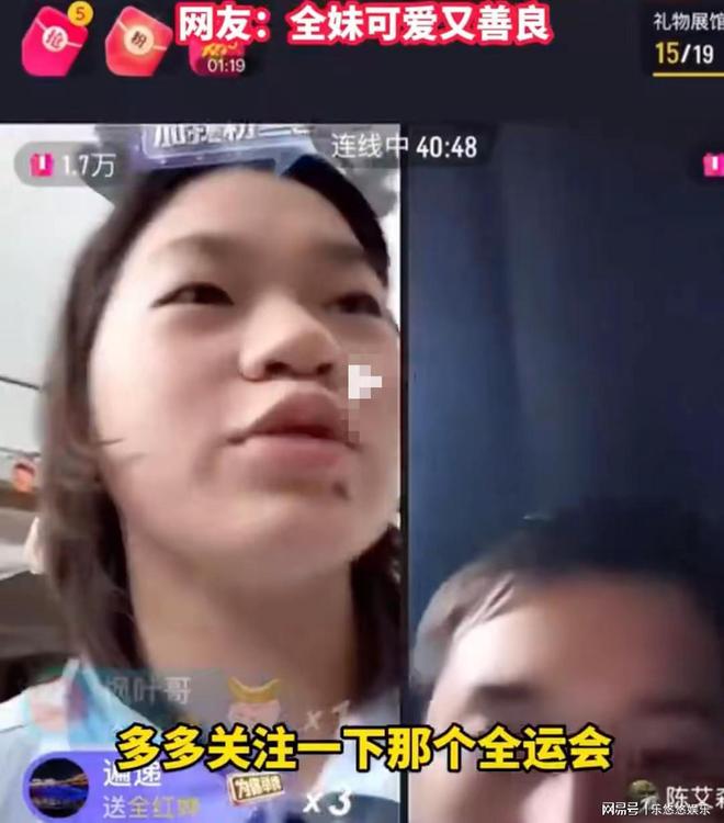 赛事结束后,她已返回广州二沙训练中心,并在深夜宿舍开播,与网友及队友陈艾森、陈艺文等奥运冠军在线互动。几人在连线时气氛热烈,一边聊天一边研究如何发福袋、发红包,还笑说自己“玩不懂,像老年人”。