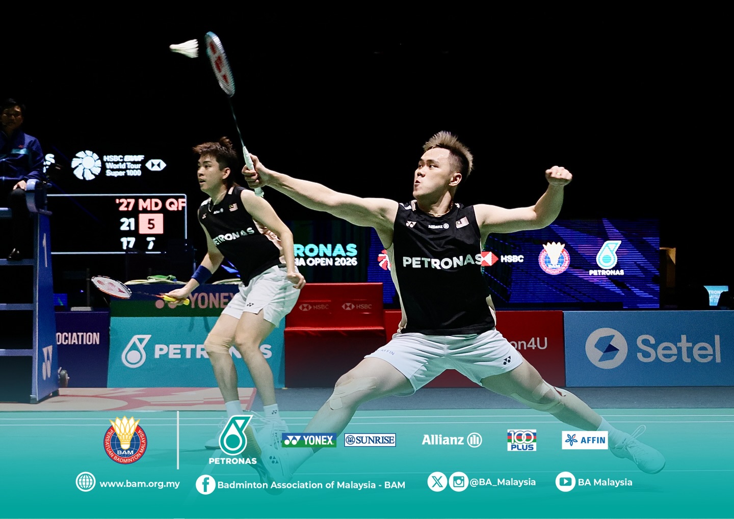 另一方面,大马另一支男双、5号种子万炜聪与郑凯文,在8强赛中以17比21、14比21不敌韩国世界冠军兼世界第一的“金徐组合”金元昊与徐承宰,止步8强。