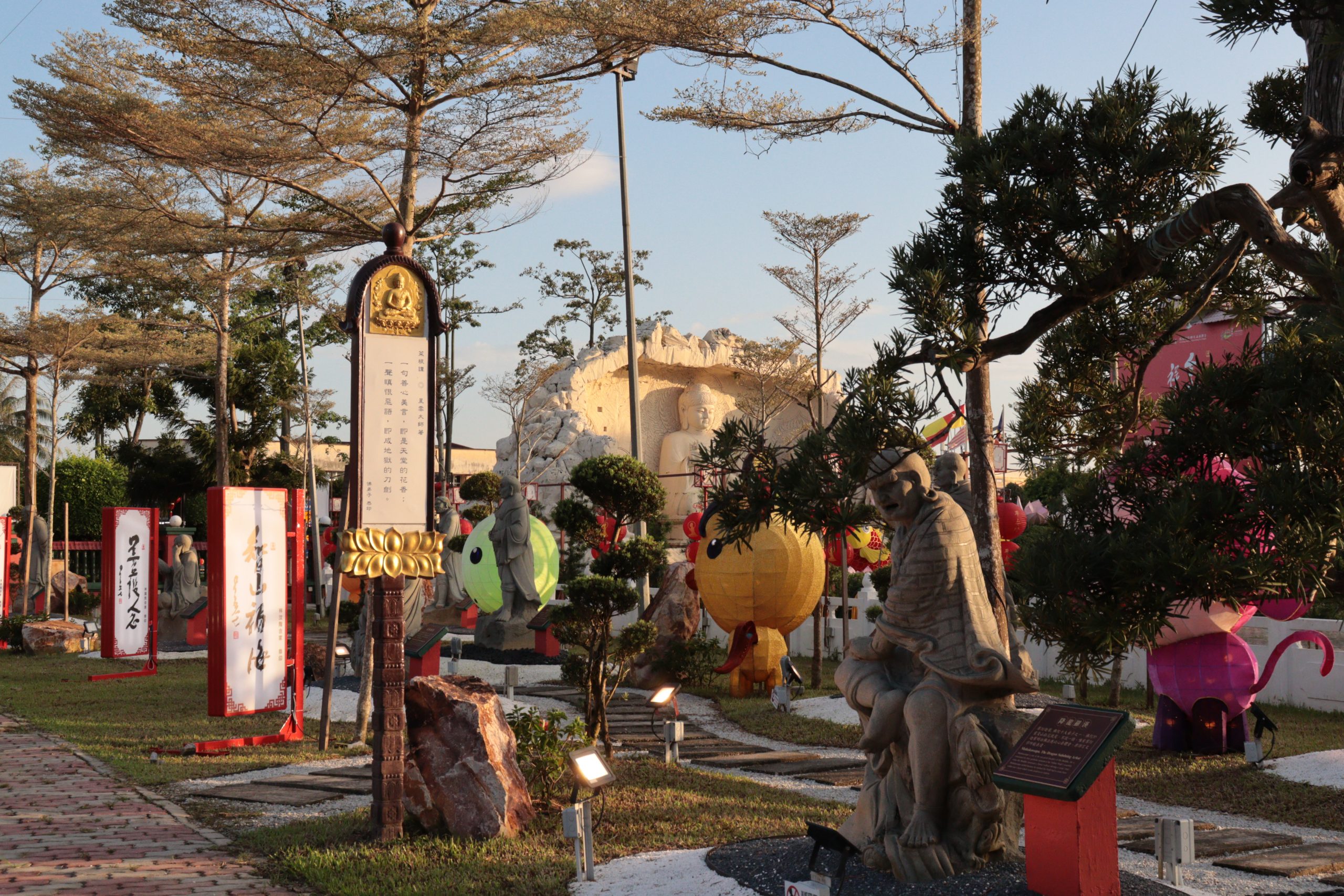 山门的十八罗汉禅园区可以欣赏到星云大师的墨宝和智慧法语。