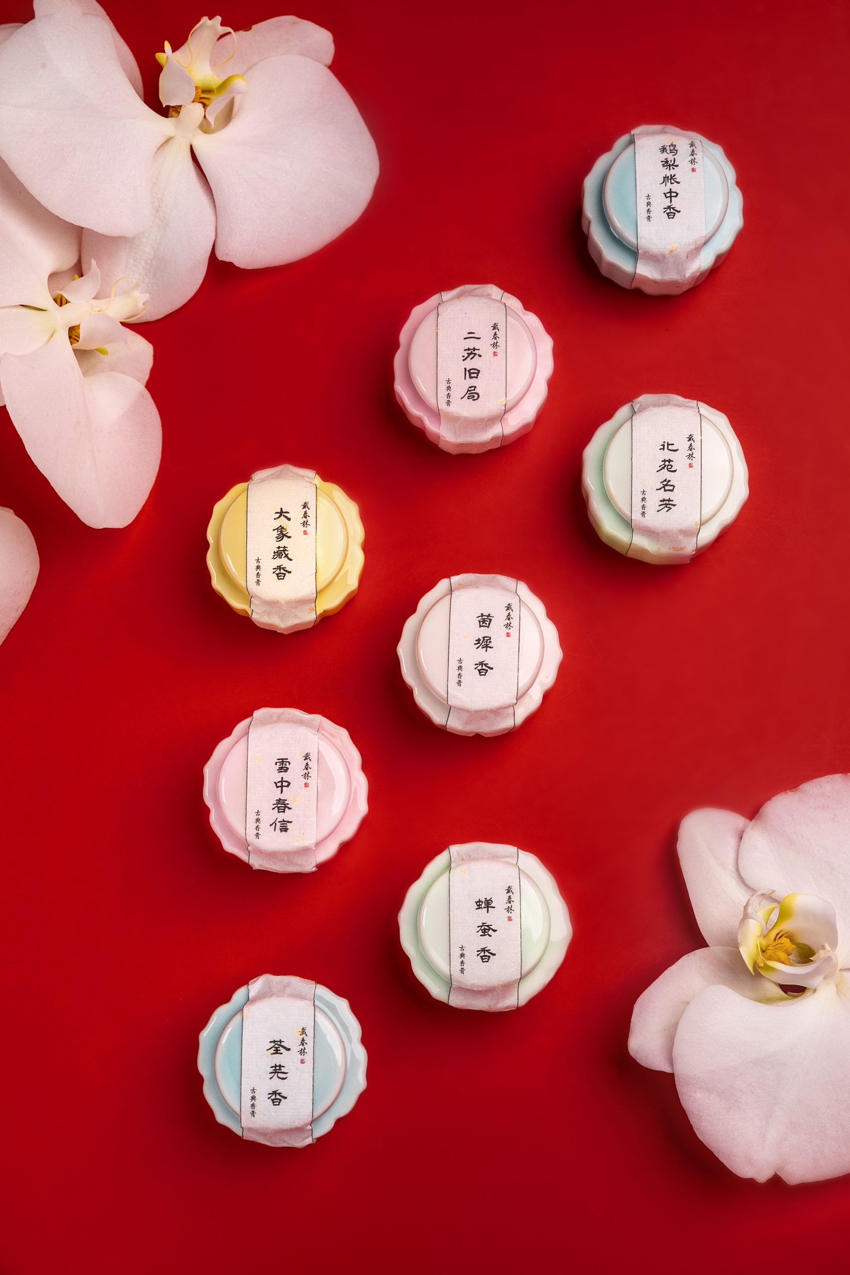 一盒承载古典美学气质的香膏,内含八种不同香型可供挑选。香膏作为固体香水的存在,其实更适合现在的女孩子们出门在外携带,小小的一个可以随时放在包里,满足随时随地喷香水的需求。