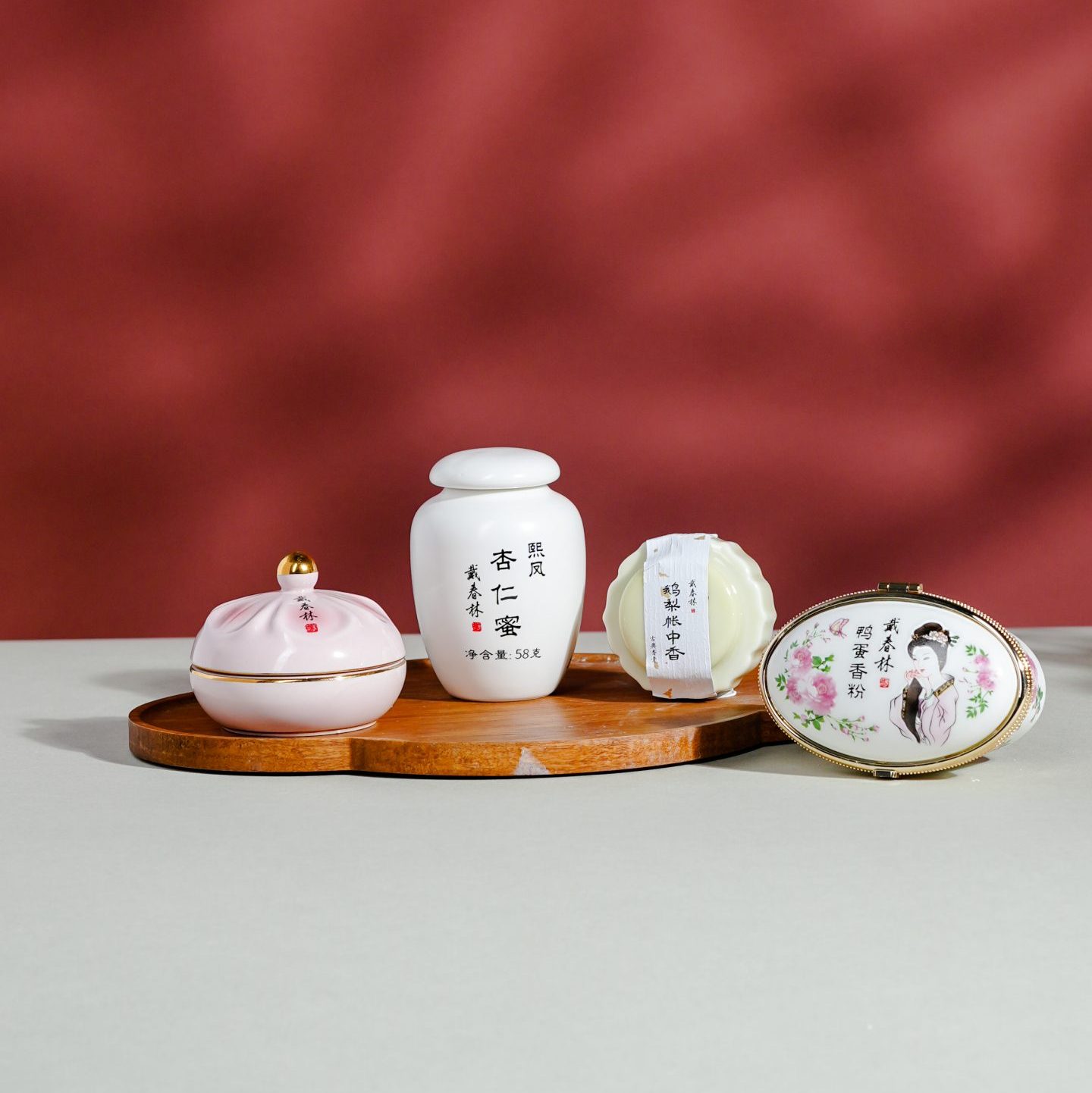 【戴春林】产品不仅讲究成分与功效,更在包装设计中融入了深厚的东方美学。陶瓷粉盒仿古瓷器造型,握在手中自带岁月质感,抑或是香膏盒精巧别致,犹如随身携带的文人香印。开启产品的每一刻,像是缓缓揭开一场岁月颂歌—不仅养肤,更养心,仿佛让日常变得更从容、有温度。