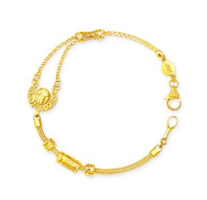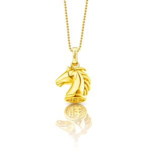以骏马之首为灵感打造,线条利落、造型立体,鬃毛如风般流动,金光跃动间尽显尊华气度。底座镌刻了“胜”字,寓意新年胜意连连、步步皆好。无论日常佩戴或节庆搭配,都能展现自信与力量,助你在新一年一马当先、马到成功!