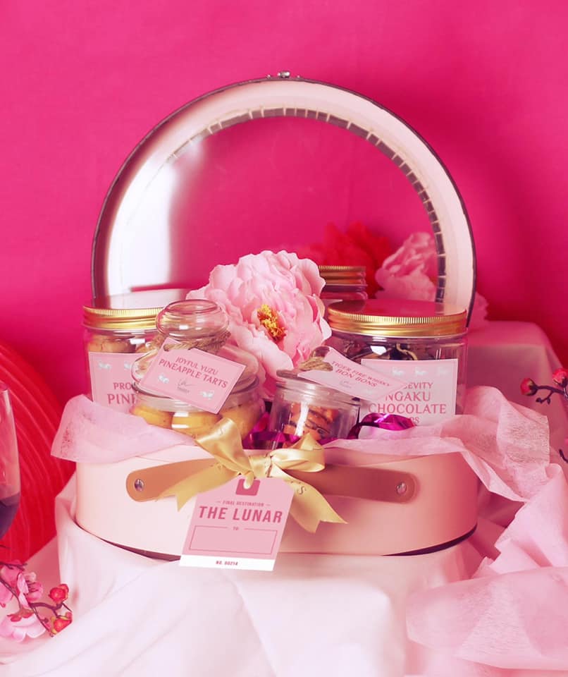 对于那些想要在“月球”的美味世界中漫步的挑剔时尚和冒险的旅行者,可以选择“月球的签名美食旅行箱礼篮”,它配有时尚的粉红色旅行箱。 礼篮包括“旺旺凤梨酥”、“长寿巧克力阿库薯片”、“吉祥花生曲奇”、“欢乐凤梨酥”、“虎火威士忌棒棒糖”等美食。 这也是在这个农历新年给您的亲人带来惊喜的完美礼物。