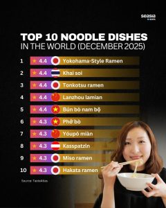 虽然榜单中仍可见日本、韩国、中国以及欧洲的经典如兰州拉面、油泼面、味噌拉面等,但今年东盟的强势入榜不仅是美食实力的体现,更代表着区域文化影响力的上升。
