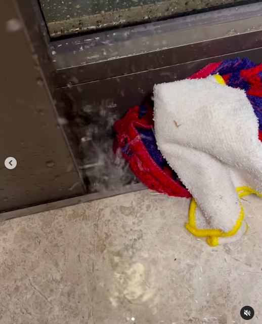 随后,她透过限动晒出家中窗户,窗框塞了多条毛巾,且毛巾放了一段时间也吸水不少。