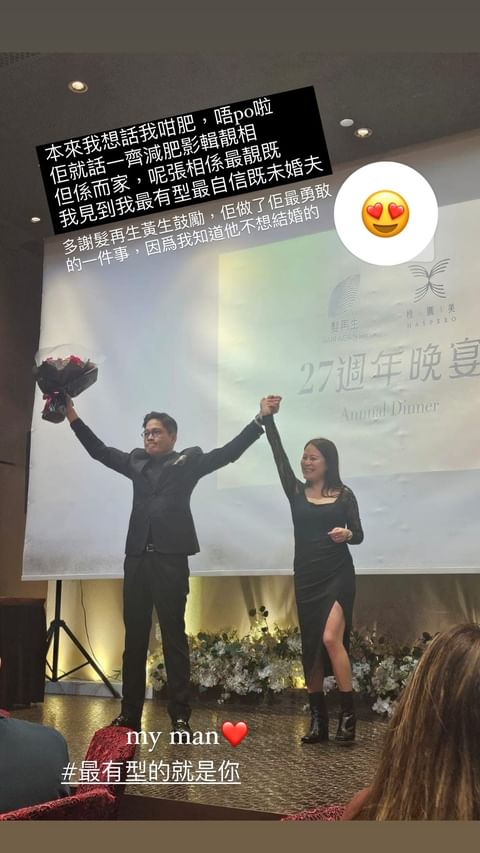 之后,她公开当日求婚现场的照片透露,原本觉得自己很肥,所以就不想发,郑启泰就鼓励说,要一起减肥拍美照。