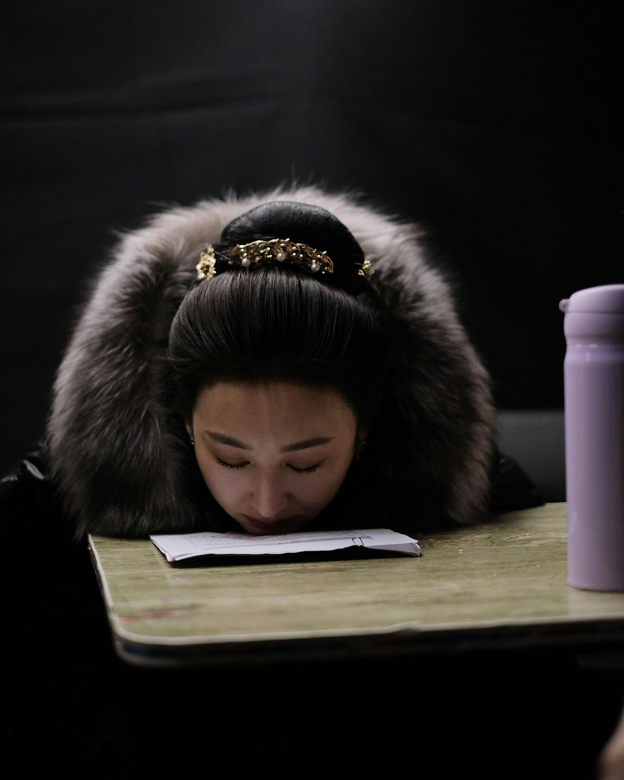 照片中可以看出,她几乎到了无论到哪里都能随时入睡,还有一张她靠在妈妈肩膀上的照片,让粉丝感到心疼。