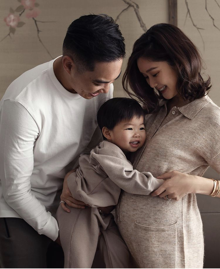 36岁靓妈岑丽香在IG宣布怀第二胎,贴上3张漂亮的孕妇照,及一家三口的温馨合照,留言表示:“Hi Baby Cashew”,准备迎接新生命的到来啦!