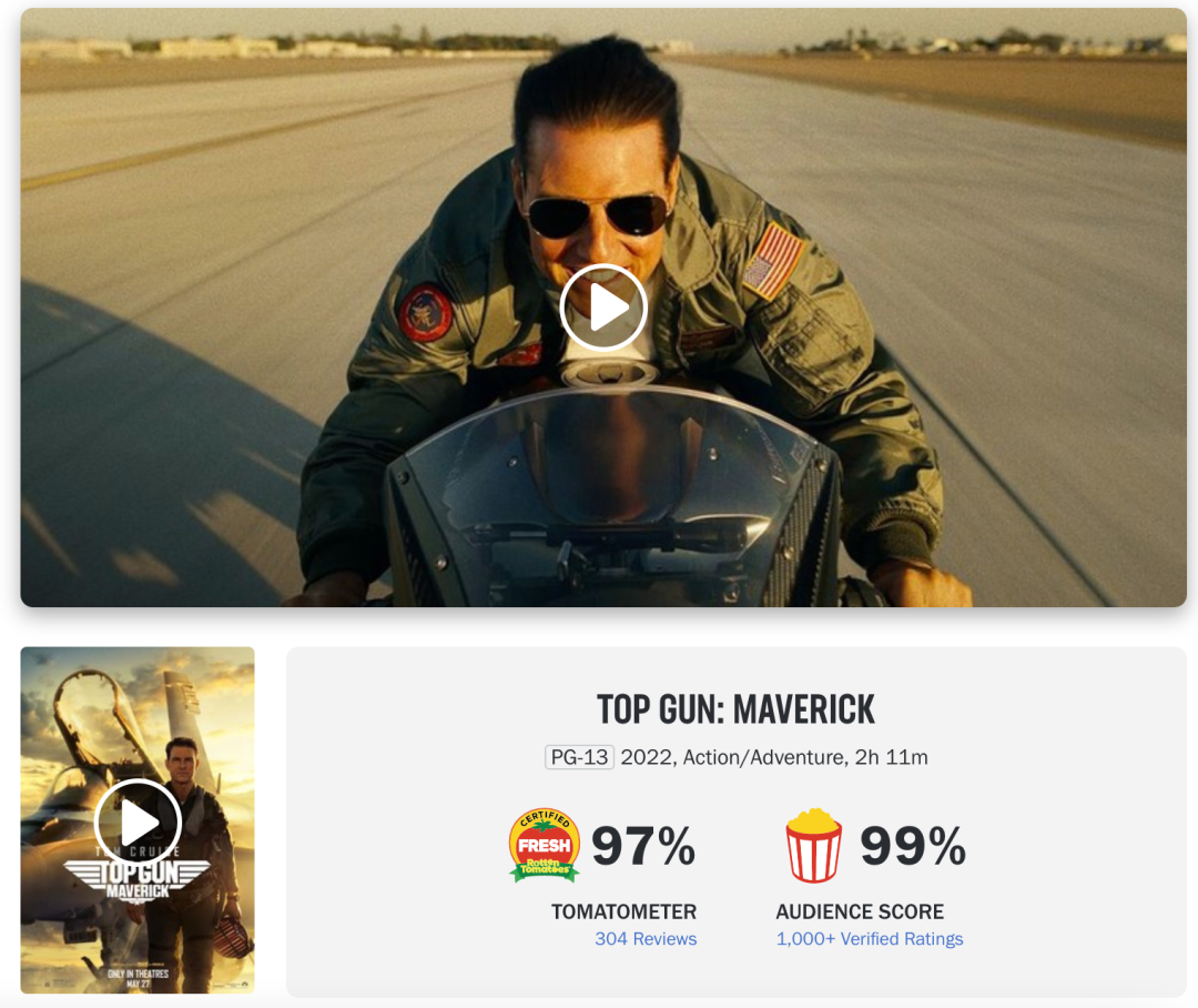 36年后《壮志凌云2》再造神一般的口碑,让阿汤哥再达北美开画票房的巅峰,与他2018年主演的《碟中谍6:全面瓦解》开画票房为6143万美元,《壮志凌云2》直接翻了一倍。