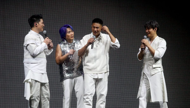 最后4人合体唱《无所谓》、《白色花漾》及《因为爱》,演唱会划下完美的句点。