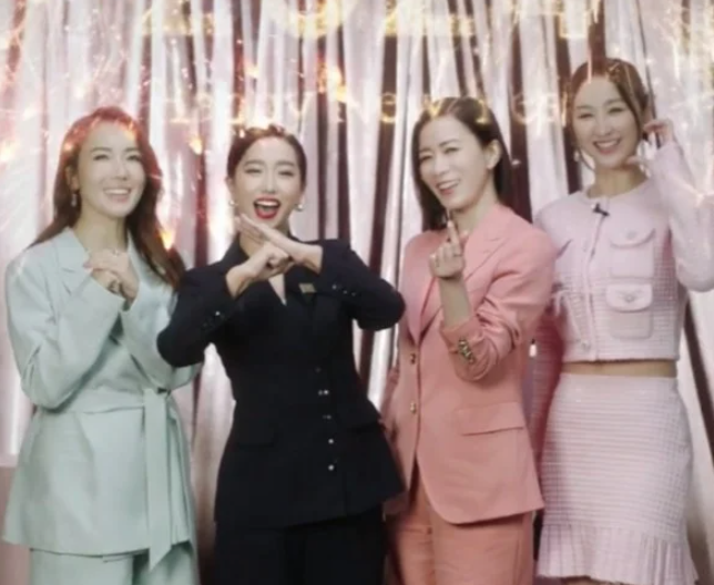 她们上演了戏中戏,之后又介绍了社交平台上的最新的AI合照功能,四位美女把她们的自拍照透过这个功能,变出了一张中式贺年大合照。