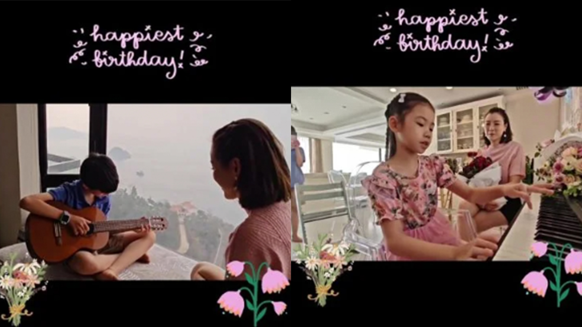 视频中,陈茵媺的大儿子陈梓烨(Aiden)和小儿子陈浩锋(Aiden)分别弹奏吉他,女儿Camilla则弹奏钢琴,为她献上生日歌。