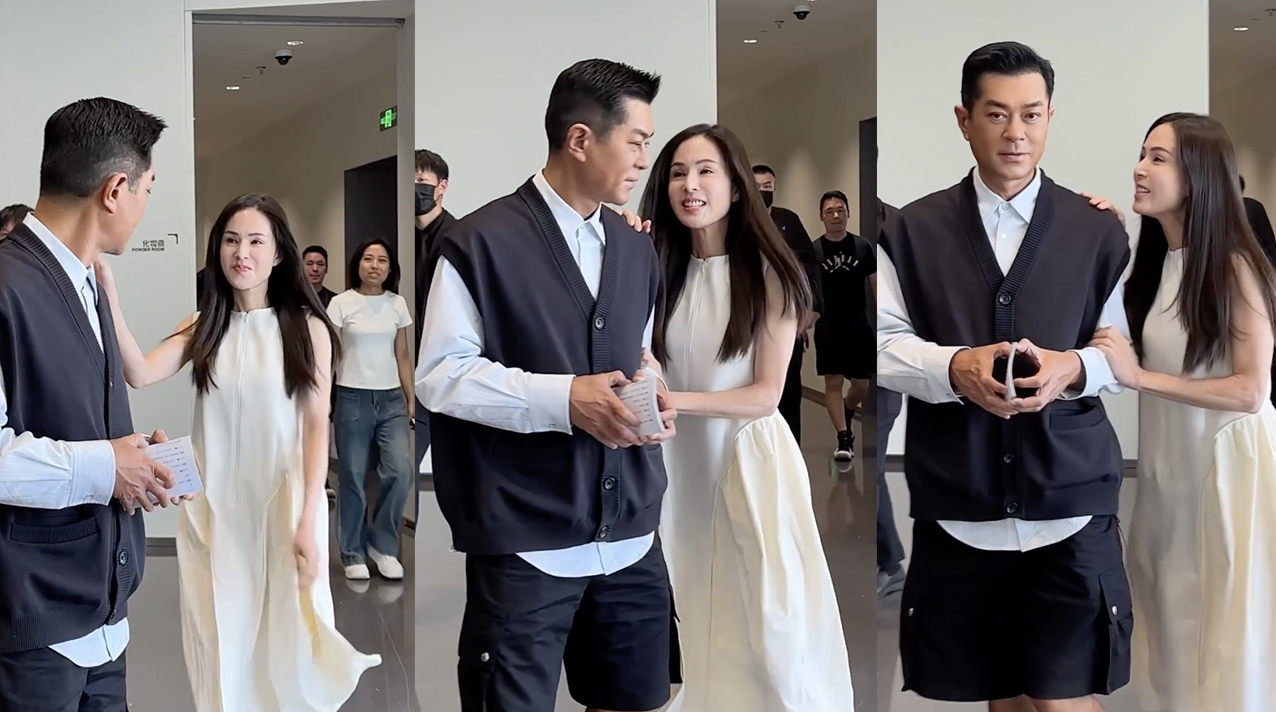 从李若彤po出的视频画面中可见,古天乐正在某活动现场后台,疑似听到熟悉声音,他便停住脚步回头往后看,接着“姑姑”李若彤便笑盈盈走向前来,并搭上他的肩膀、握住其手臂,两人边走边聊,显得非常开心和投契。