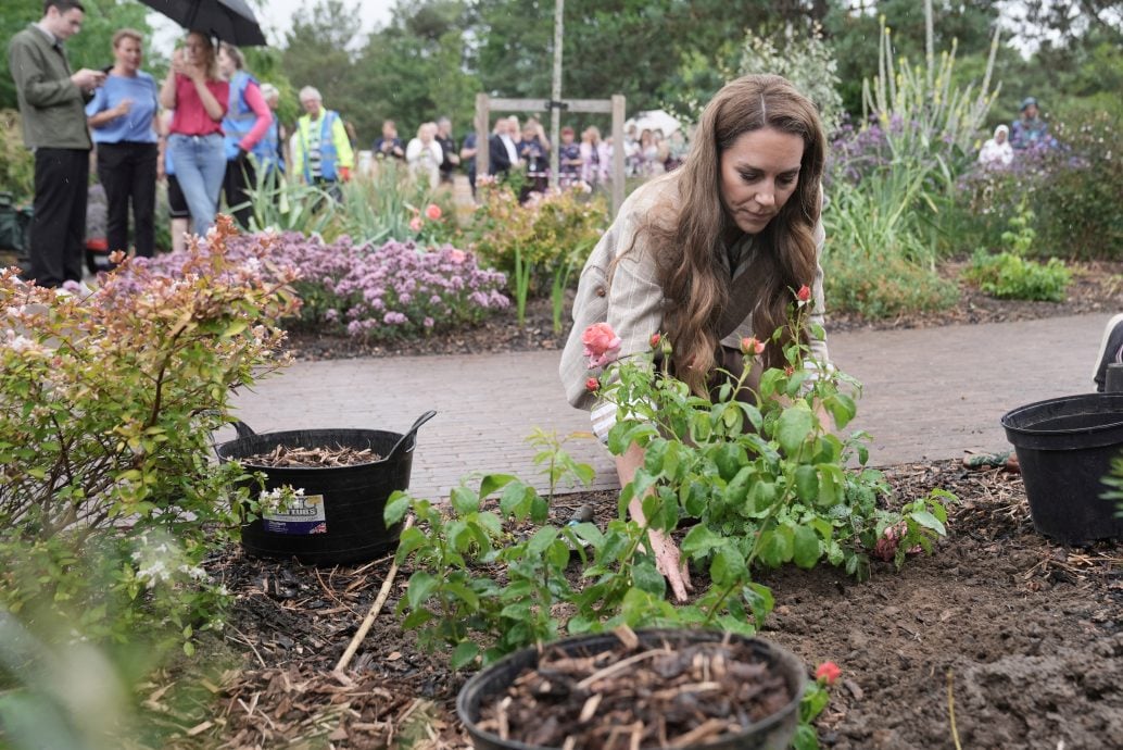 活动中,凯特还亲手种下英国皇家园艺学会为她培育、并以她命名的新品种“凯特玫瑰”。