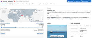 一艘载有伊拉克原油的大马油轮“海洋雷霆号”(Ocean Thunder)已通过靠近伊朗海岸的霍尔木兹海峡,正驶往我国卸货。