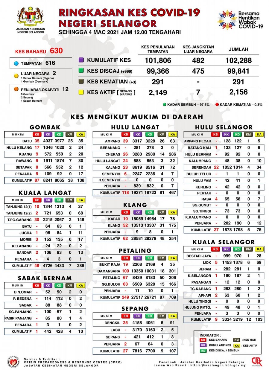 ➡️雪州新增630宗,八打灵最高占249宗,乌冷118宗、鹅唛87宗、巴生62宗、瓜冷48宗、乌雪及雪邦各27宗、瓜雪9宗、沙白1宗。