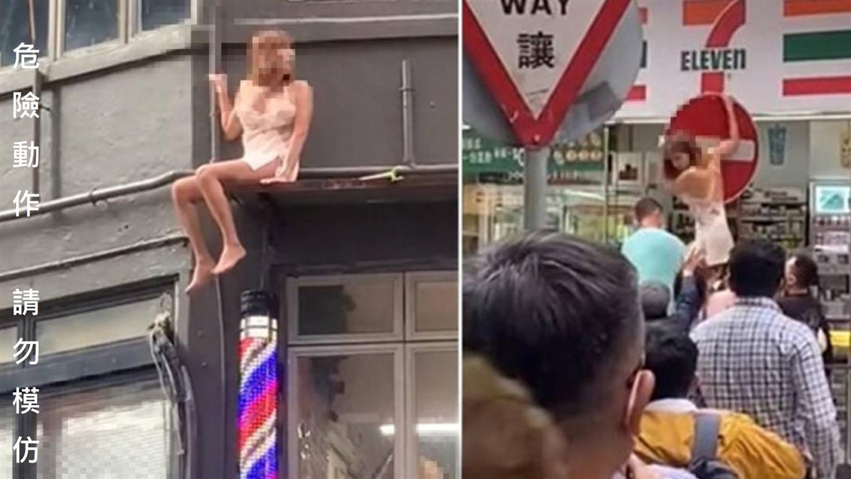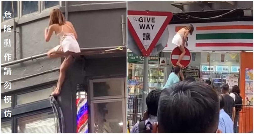 根据许多网民上载到社媒的画面显示,这名穿着露胸薄纱裙的女子,光天化日下站在窗外,看起来很不知所措,接着不顾众人眼光,沿着遮雨棚、招牌慢慢降落到一楼,她期间动作超大,丝毫不怕走光,下方很多的路过的男子看到,都冲上前帮忙把人扶下来。