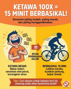 大马公共卫生专页(PHM)在脸书分享,多项生理学研究发现,开怀大笑100次相当于在健身单车上锻炼15分钟,让不少网友直呼“原来笑也能健身”。