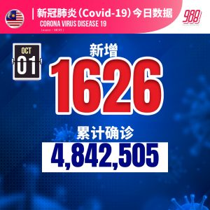 卫生部COVIDNOW网站通报,截至1日11.59pm,我国新增 #1,626例,累计病例至今 #4,842,505宗。
