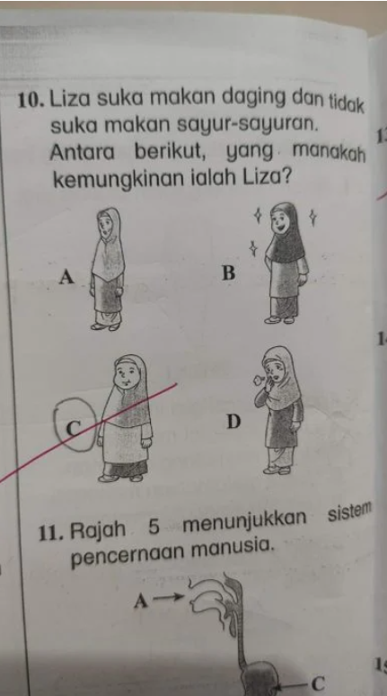 学前班教师“阿优老师”在TikTok分享一道小学考卷问题:丽莎只喜欢吃肉,不喜欢吃菜,以下哪一个选项最有可能是丽莎。