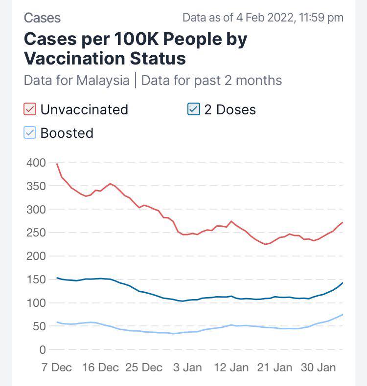 他今日在面子书发文和图表,该图表明显显示,有接种加强剂的人染疫数量较少。