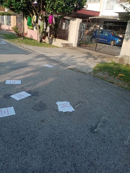 当时她不以为意,以为是阿窿传单。到了早上9时准备出门清理传单时,才发现传单上写着恐吓的字眼。