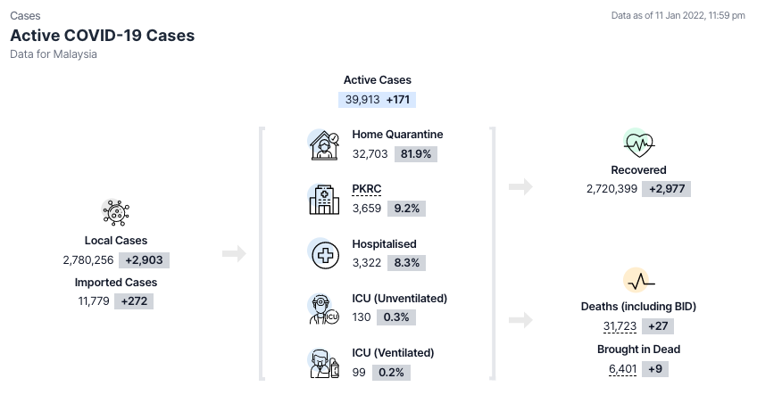卫生部COVIDNOW网站深夜11时59分通报,1月11日新增死亡病例(包括积压病例)报27宗,累计达31,723宗。
