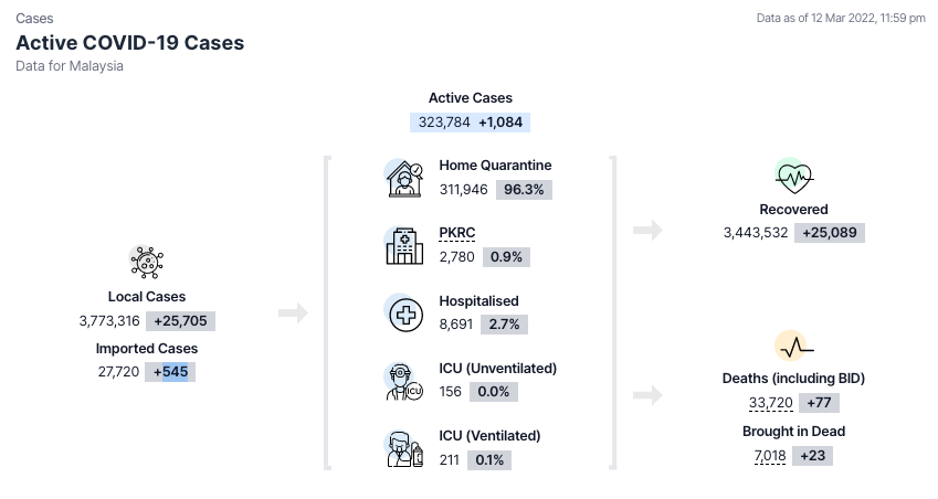 卫生部COVIDNOW网站通报,截至12日11.59pm,我国新增 #26,250宗,累计病例至今 #3,801,036宗。