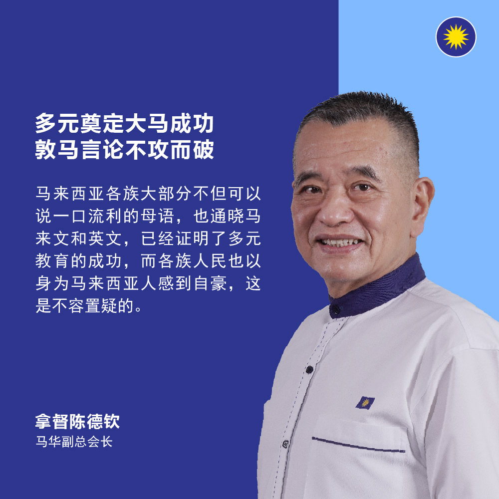 “曾经两次担任首相的敦马更加应该以多元种族可以和睦相处为荣,并极力推广大马多元种族、文化的特征,让世界各国赞扬和学习作为目标,而不是一再发表破坏种族间关系的言论。”