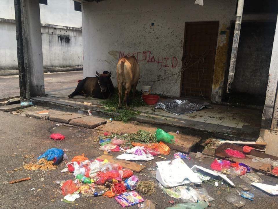 @MALAYSIAVIRALL在社媒X上载4张牛只被饲养在走廊的照片,并谴责外劳在走廊上养牛的行为。
