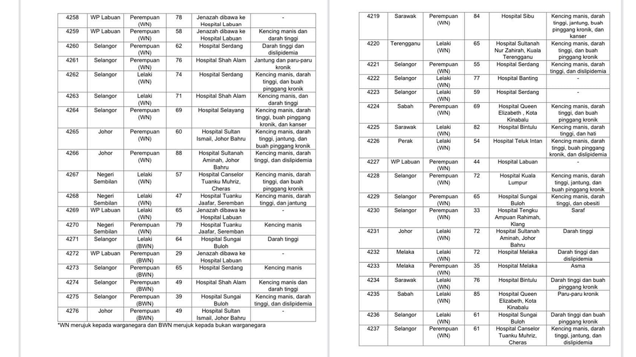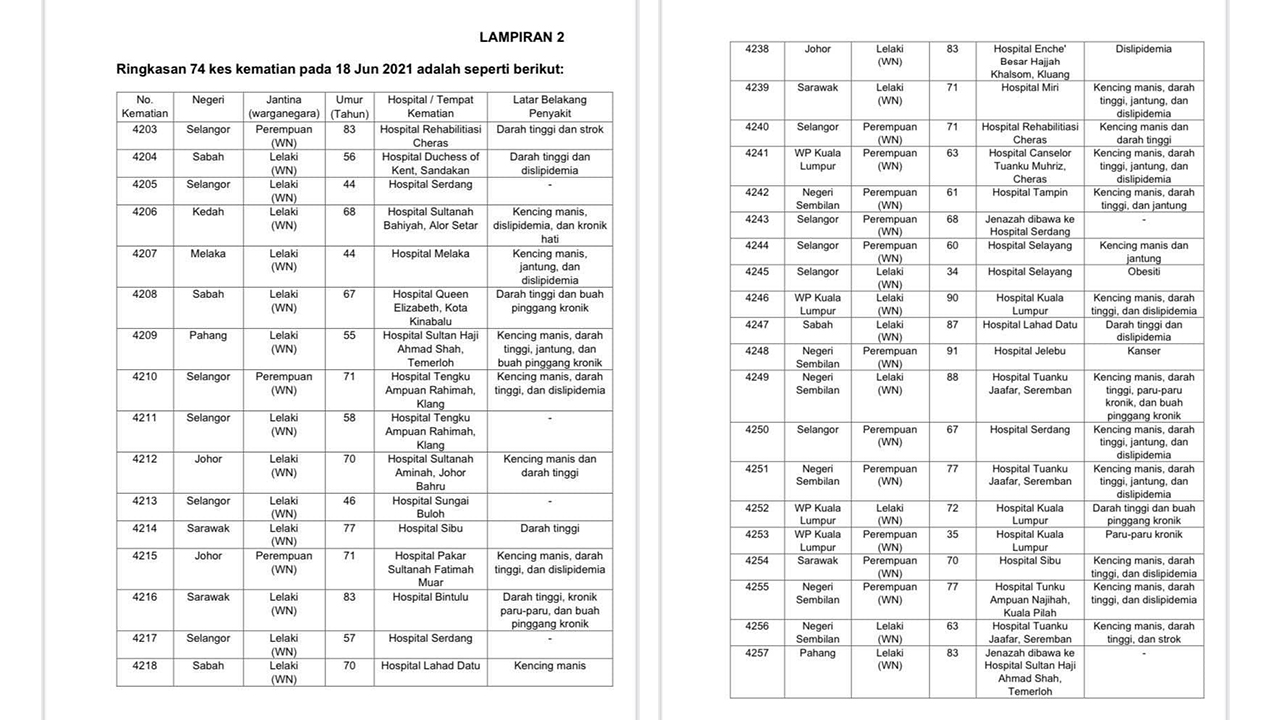 📌今天有74人死,分别来自雪兰莪(28)、森州(9)、柔佛(7)、砂州(7)、沙巴(6)、纳闽(5)、吉隆坡(4)、甲州(3)、彭亨(2)、霹雳(1)、槟城(1)、登州(1)及吉打(1)。死者资料如下: