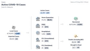 卫生部COVIDNOW网站通报,截至19日11.59pm,我国新增 #3490例,累计病例至今 #4,752,490宗。
