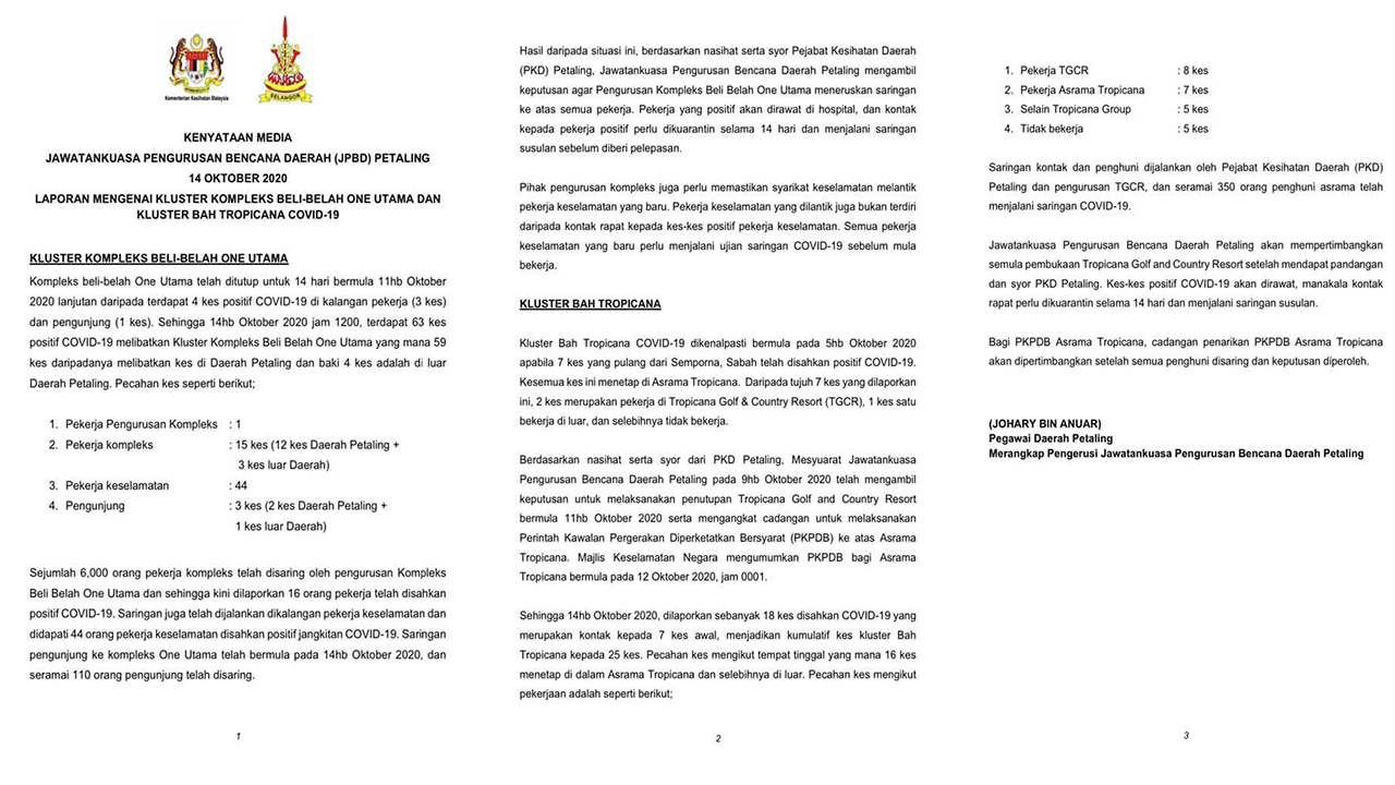 根据《当今雪州》报道,佐哈里说,随着在万达广场所进行的大规模检测,并测出至少60人感染后,该委员会认为,万达广场管理层务必安排全员筛检。