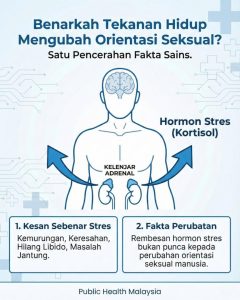 大马公共卫生脸书专页破解坊间流传,有关情绪压力、工作压力或个人问题可能影响人们性取向或成为同性恋的迷思。