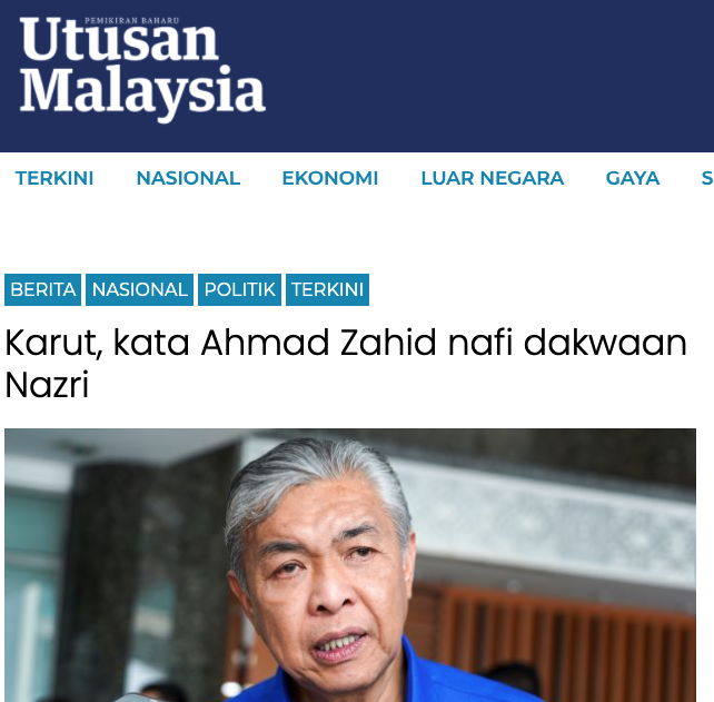 另根据《马来西亚前锋报》报道,巫统主席扎希否认25名巫统国会议员对他失去信心,更驳斥纳兹里的指控不过是“卡通故事”。
