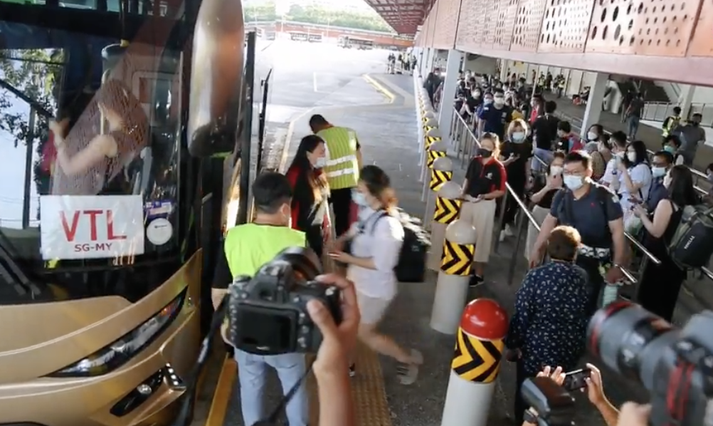新加坡《联合早报》报道,首趟VTL短程巴士在今早8时左右,从兀兰临时巴士转换站出发前往新山。