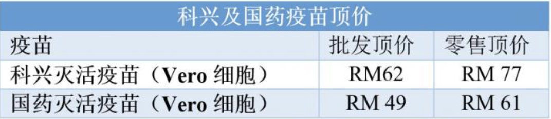 “基本上,制定的顶价是按进口价格和当前市场价格来确定。当局将持续审查冠病疫苗的清单和价格,并按当前市场情况和需求,持续更新或移除疫苗的名单和顶价。”
