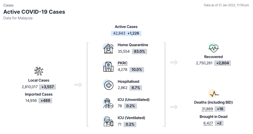 卫生部COVIDNOW网站深夜11时59分通报,1月21日新增死亡病例(包括积压病例)稍降,报16死,累计达31,869宗。