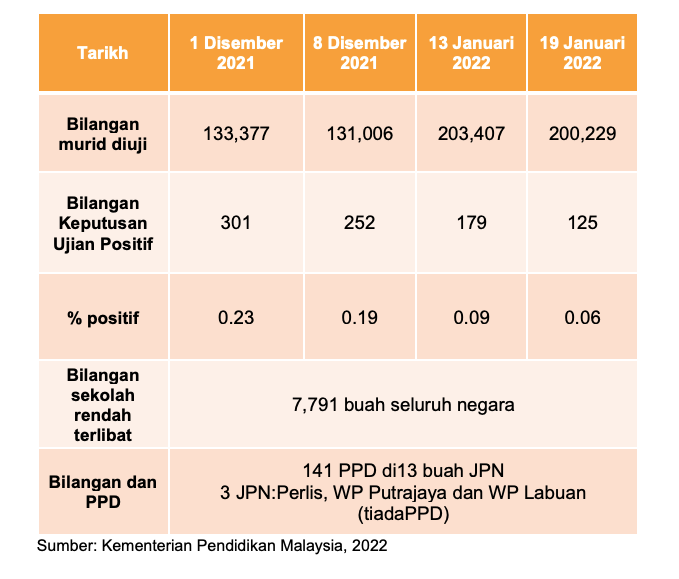9) Memastikan ventilasi di kelas, bilik asrama dan ruangruang tertutup dalam keadaan yang baik bagi mengurangkan risiko jangkitan COVID-19; dan 10) Keputusan ujian kendiri COVID-19 yang dilaksanakan oleh murid dengan bimbingan ibu bapa atau penjaga di rumah perlu dilaporkan kepada pihak sekolah.