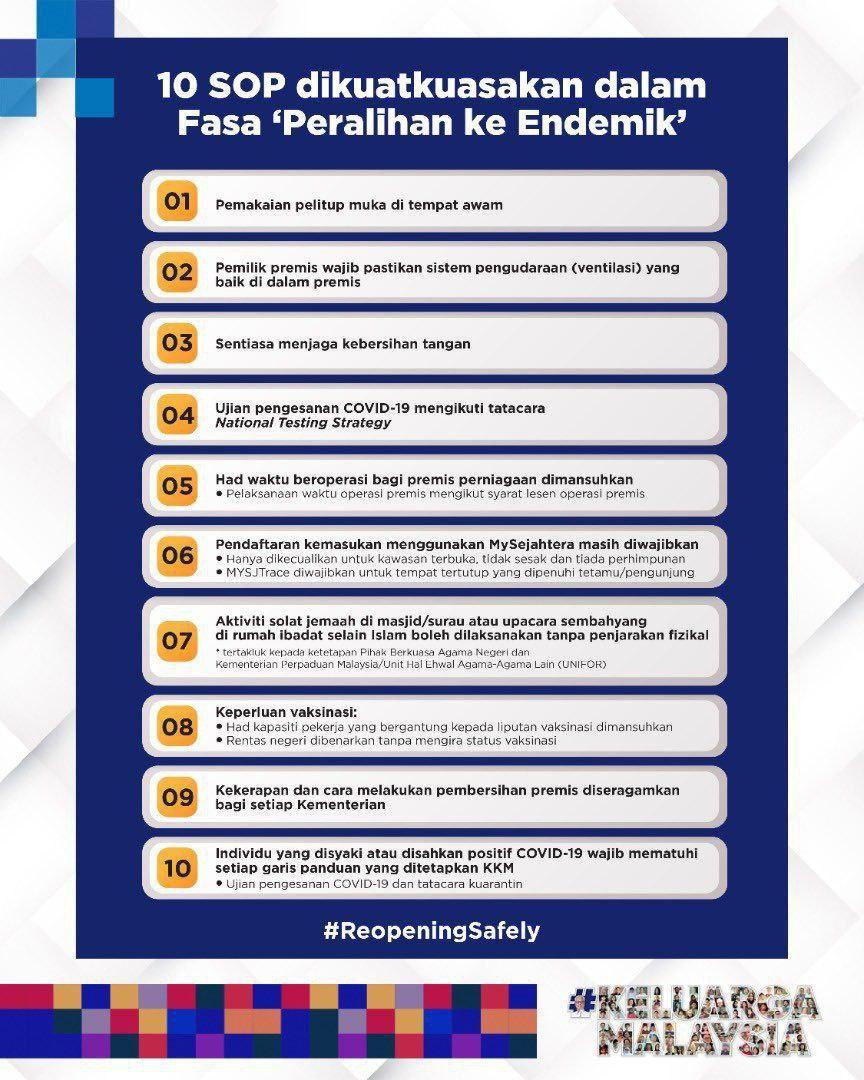 首相依斯迈沙比里宣布,我国从4月1日起进入Endemic地方流行病过渡阶段,同时国门也会在这一天重开!