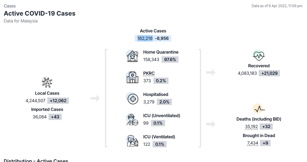 卫生部COVIDNOW网站通报,截至6日11.59pm,我国新增 #12,105例,累计病例至今 #4,280,591宗,再有32人死。