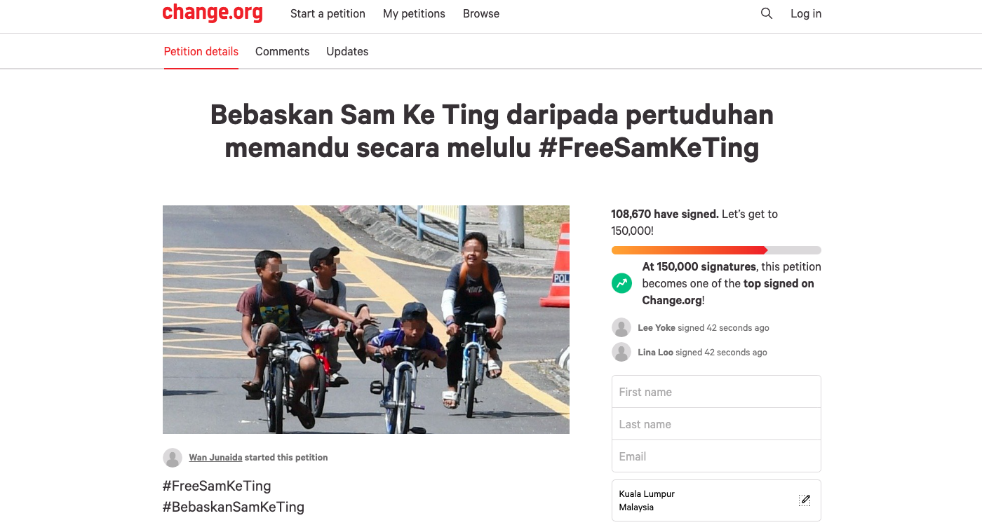 https://www.change.org/p/free-sam-ke-ting-from-charges-on-reckless-driving-bebaskan-sam-ke-ting-daripada-pertuduhan-memandu-secara-melulu-bebaskansamketing-freesamketing