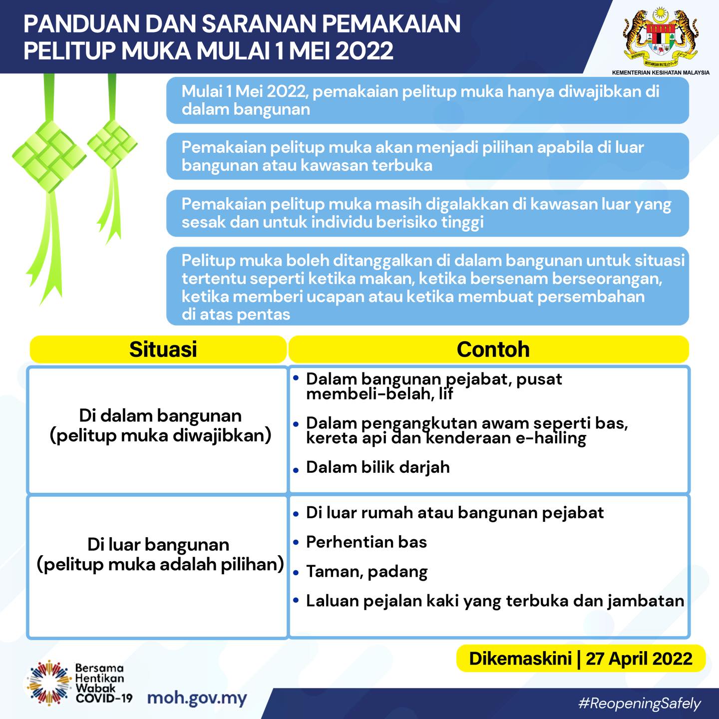 📌凯里宣布,从5月1日开始,室内及公共交通依然维持强罩令,但户外及开放场所则不再强制,民众可自由选择,但政府强烈鼓励民众继续戴口罩。