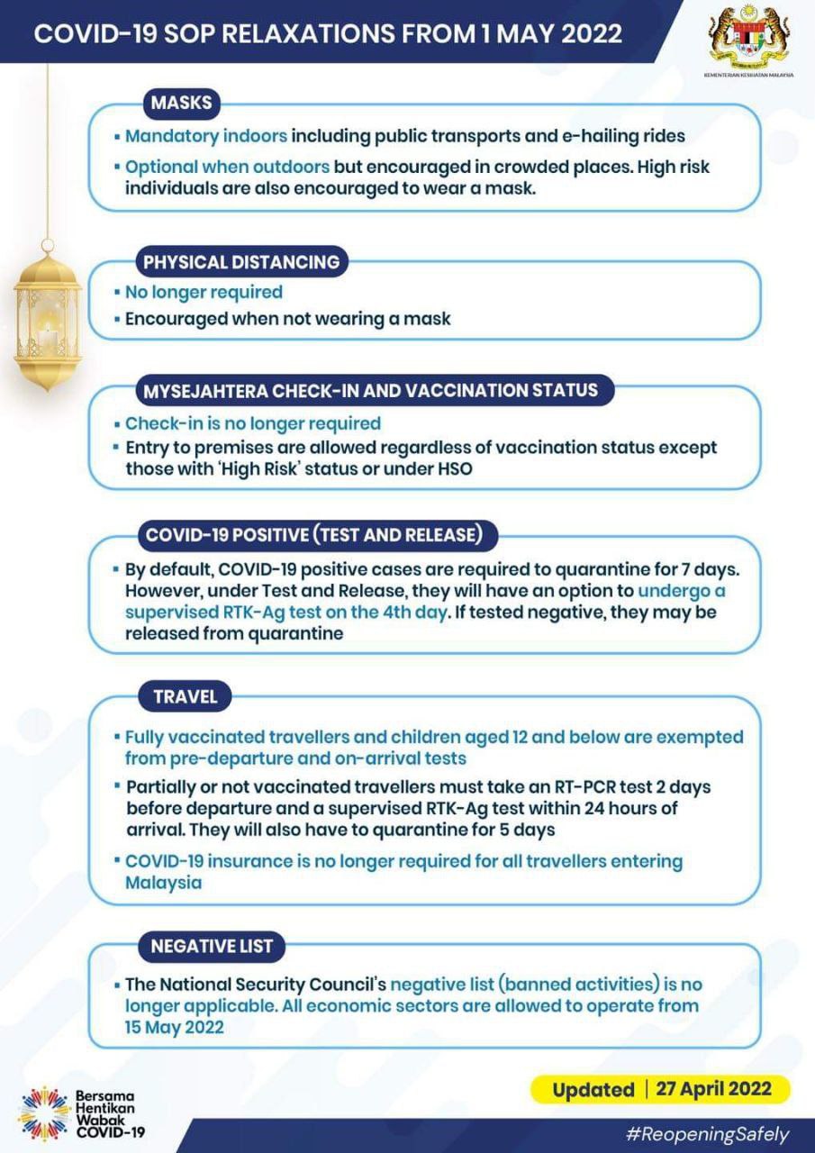 📌凯里说,从5月1日起,已接种疫苗的外国访客入境,无须再做RT-PCR或RTK-Ag筛检、不用入住隔离酒店及购买冠病保险,不过,访客必须出示接种证明以及MySejahtera Traveller卡。
