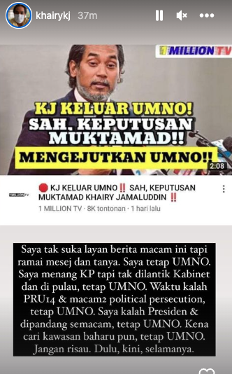 “我不想回应这种消息,但我收到很多询问的讯息。我依然是巫统党员。”